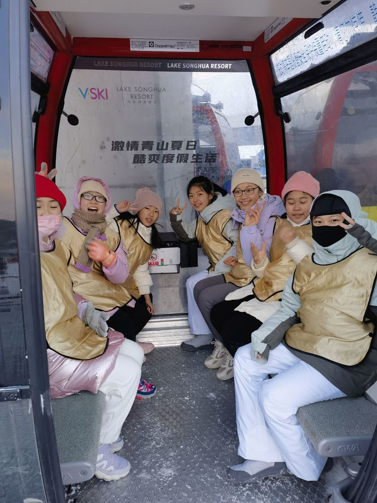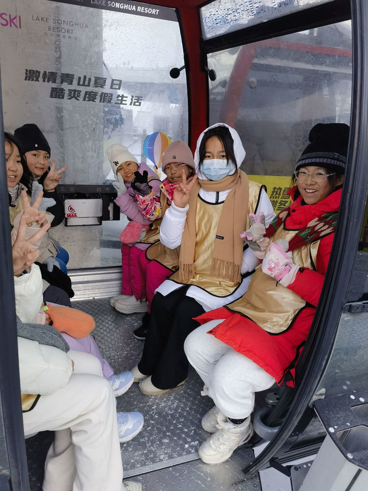當(dāng)坐在滑雪場的高空索道纜車上向下俯瞰的時候,同學(xué)們看著遠處冰雪覆蓋的松花江好似蜿蜒巨龍,于銀白雪地里穿行,周邊群山或巍峨或綿延,不由得發(fā)出陣陣贊嘆。對于少年們,這是另外的一種收獲,是眼界的拓寬,更是精神層面的延展。